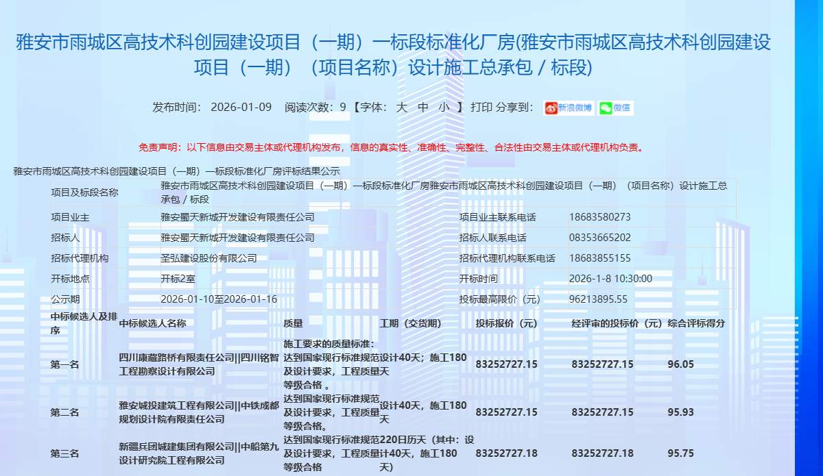 蓄勢突破,奮楫開新。康藏路橋公司成功斬獲雅安市雨城區(qū)高技術(shù)科創(chuàng)園建設(shè)項(xiàng)目(一期)一標(biāo)段標(biāo)準(zhǔn)化廠房項(xiàng)目,中標(biāo)金額8325.27萬元,為公司2026年發(fā)展強(qiáng)勢開篇,迎來馬年“開門紅”。